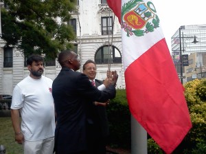 EL ALCALDE DE PATERSON Y EL CONSUL PERUANO PROCEDEN A IZARLA 12:06 P.M.