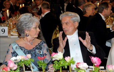 Vargas Llosa realizó una reverencia ante el monarca sueco, quien le entregó el diploma y la medalla de oro con el rostro de Alfred Nobel, al compás de «Kijés Wedding», la pieza compuesta por el ruso Serguei Prokofiev en 1933.