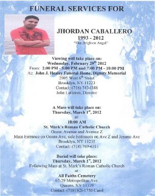 La Asociación de Vecinos de Brighton y la comunidad entera se volcó para intentar ayudar a la familia, y la funeraria John J. Healy de Brooklyn se ofreció para correr con los gastos y organizar una misa funeral en la iglesia St. Marks de Ocean Avenue hoy a las 10 a.m. y posterior entierro en el cementerio All Saints.»Me siento muy agradecido por toda la ayuda que nos han prestado», declaró Jorge Caballero, padre de Jhordan. «Al menos nos aporta cierto consuelo», agregó.