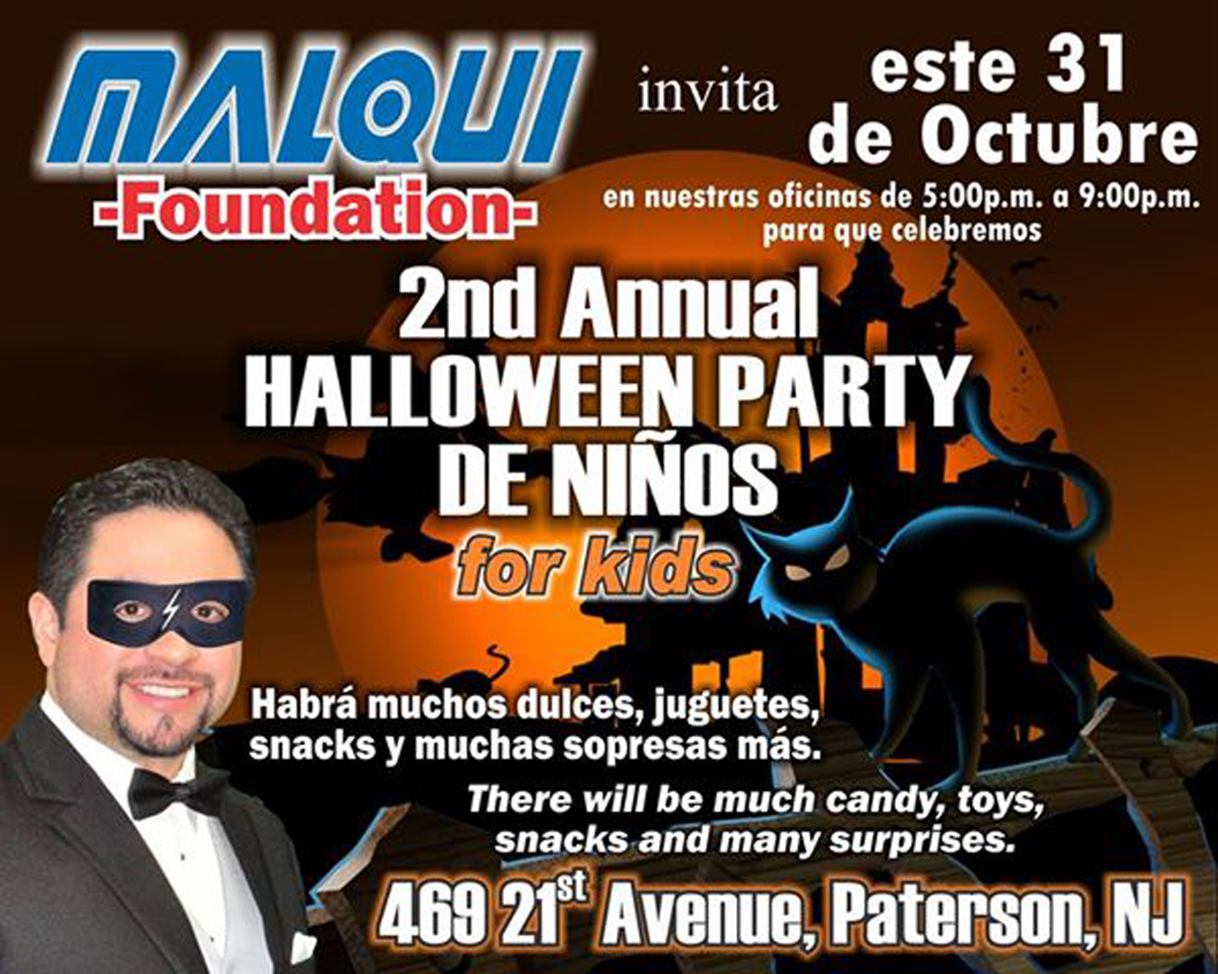 PATERSON, 4 DE NOVIEMBRE – Miles de dulces y sorpresas repartió la Fundación Malqui, presidida por el empresario César Malqui, durante la fiesta de Halloween este 31 de Octubre.