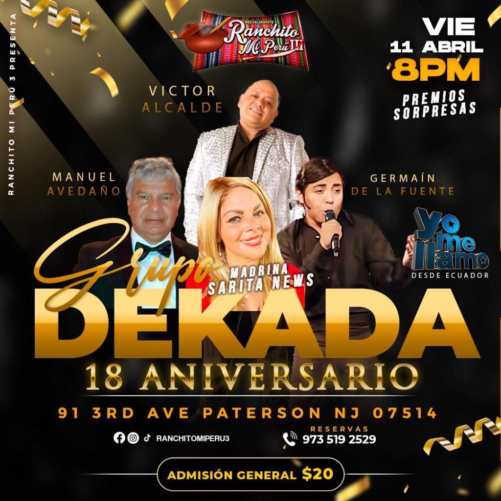 • GRUPO DEKADA CELEBRA 18 AÑOS… y lo hace a lo grande este 11 de abril…