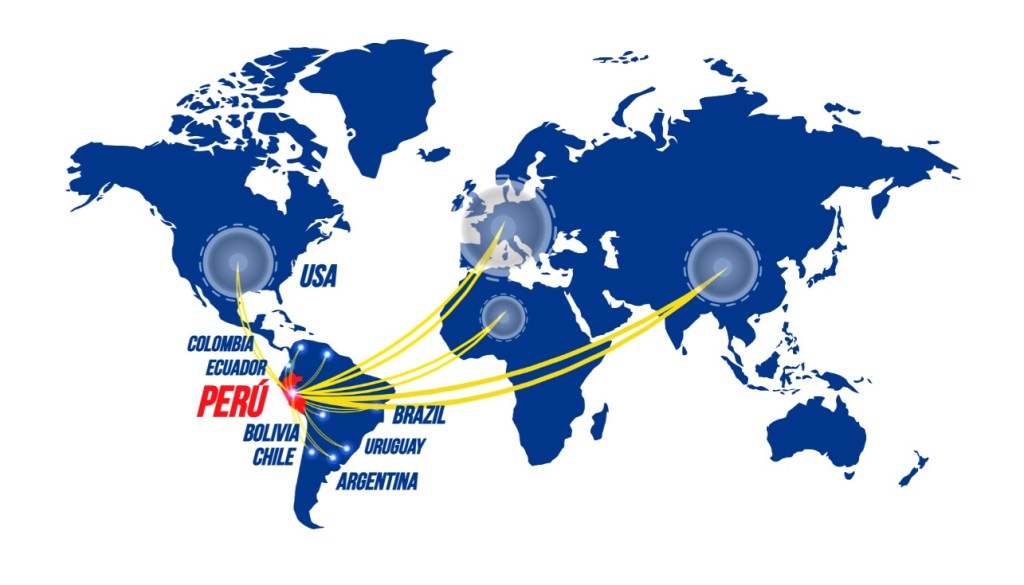 Nuestras alianzas estratégicas nos permiten enviar dinero a más de 300 mil puntos de pagos en el mundo. Teniendo como principales destinos a EE.UU, Colombia, España, Italia, Argentina, Venezuela, Chile, Brasil, Bolivia, Ecuador y más países.