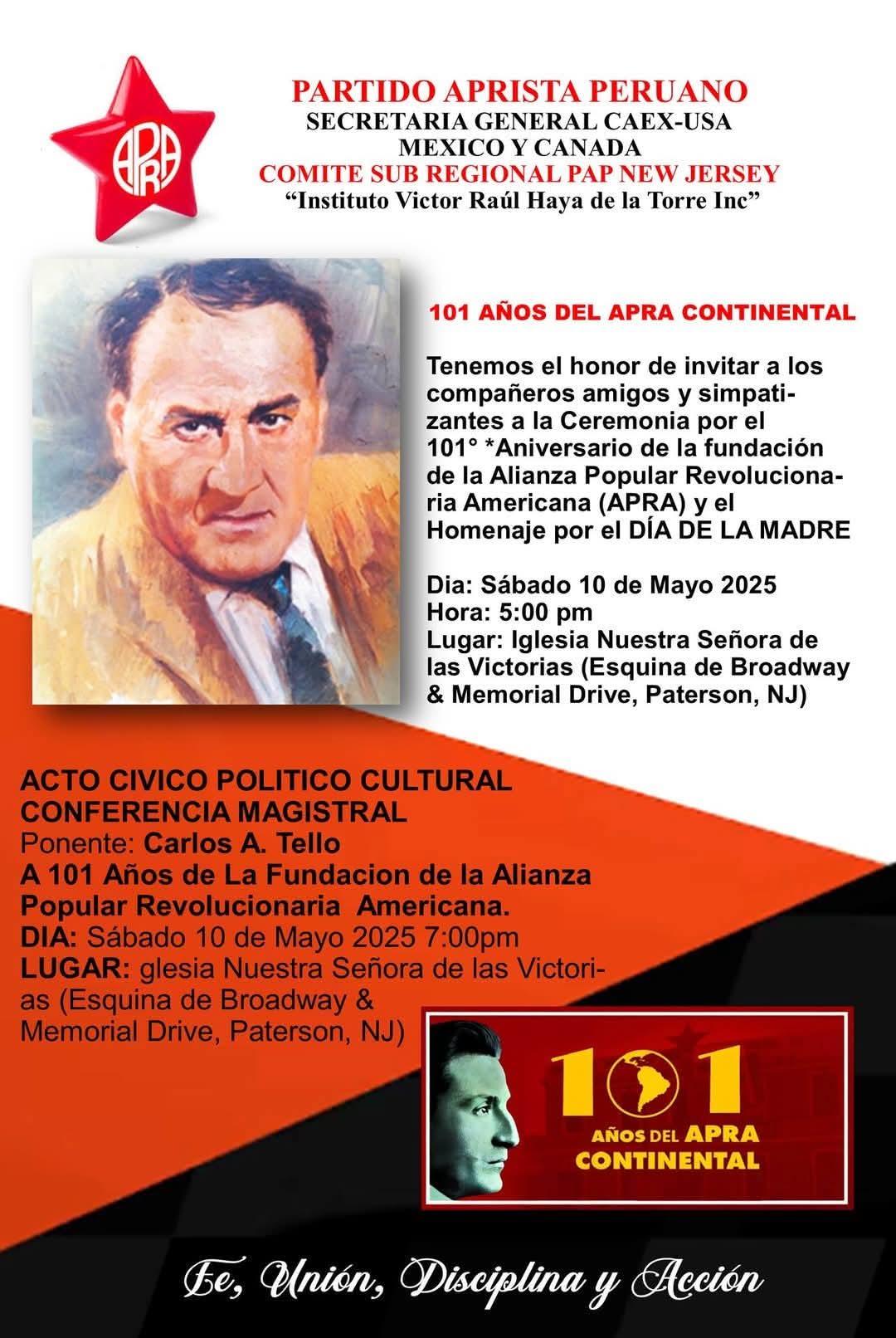 * HOMENAJE A LA MADRE Y CELEBRACIÓN DEL 101 ANIVERSARIO DE LA FUNDACIÓN DEL APRA CONTINENTAL (México DF, 7 Mayo 1924)