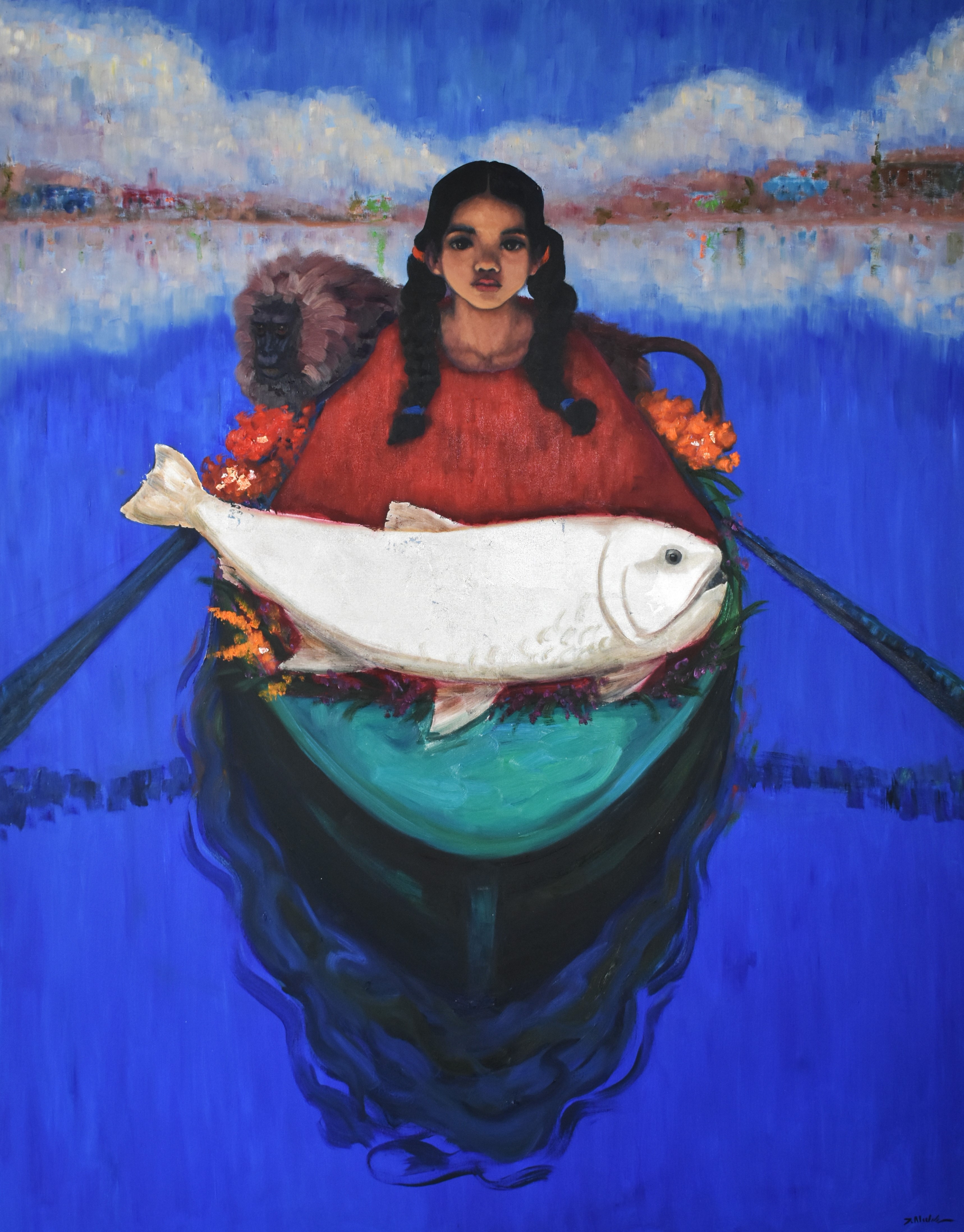 -Sí, aunque me interesa más usar símbolos universales a los que les doy una interpretación propia. Las barcas, por ejemplo, significan avance, traslado. Las flores son ofrendas. El agua es vida. Los animales, especialmente los monos, representan comunidad e instinto. Y el ser humano, claro, como timón de su propio destino.