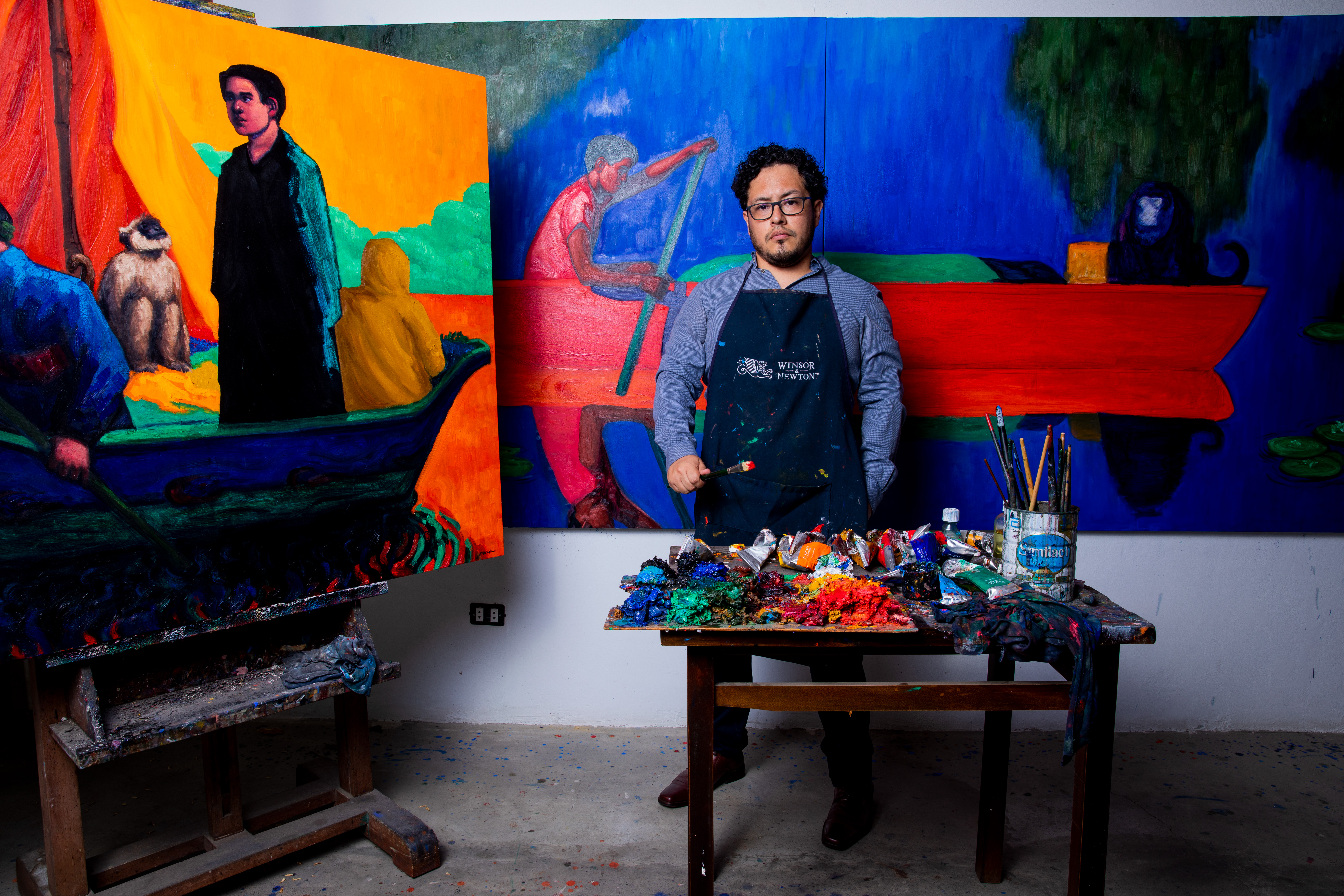 LIMA, MAY 21 – Sentado en su taller en Magdalena, rodeado de telas aún frescas, bocetos y pigmentos, el pintor peruano Diego Alcalde habla pausado, como si cada palabra fuera parte de una pincelada. Su más reciente producción artística está marcada por un profundo diálogo con la naturaleza, la cultura y la espiritualidad humana. A través del óleo y una mirada siempre curiosa, el pintor peruano crea escenas que oscilan entre lo cotidiano y lo simbólico, lo terrenal y lo espiritual como también lo onírico. En esta conversación, Alcalde comparte su proceso, su evolución y los significados que habitan en cada una de sus pinceladas.