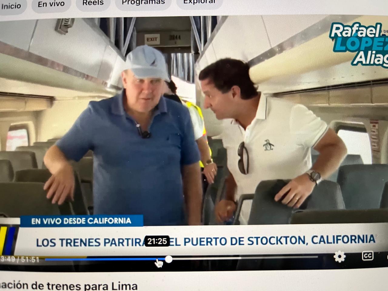 LOS ANGELES, JUN 20 – El alcalde de Lima, Rafael López Aliaga, ya se encontraba a bordo de un tren de pasajeros para supervisar la primera flota que será embarcada hoy viernes 20 de junio desde el puerto de Stockton, en California.