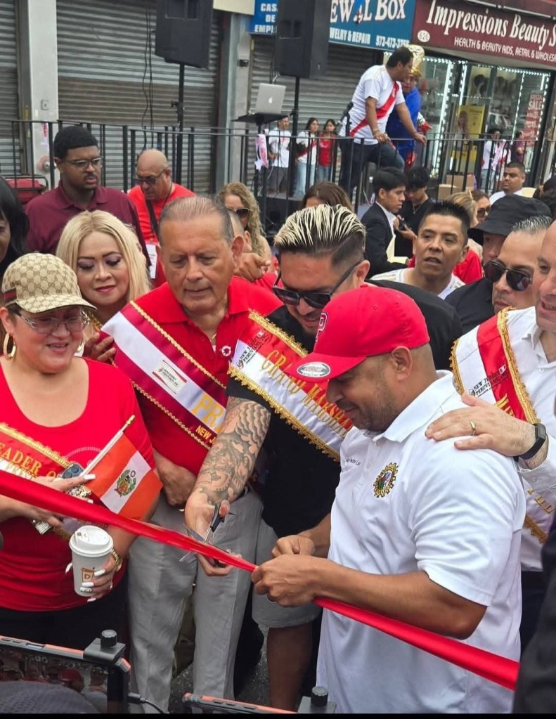 En Passaic… Juan Manuel «Loco» Vargas, cortando la cinta que marca el inicio del Gran Desfile Peruano 2025