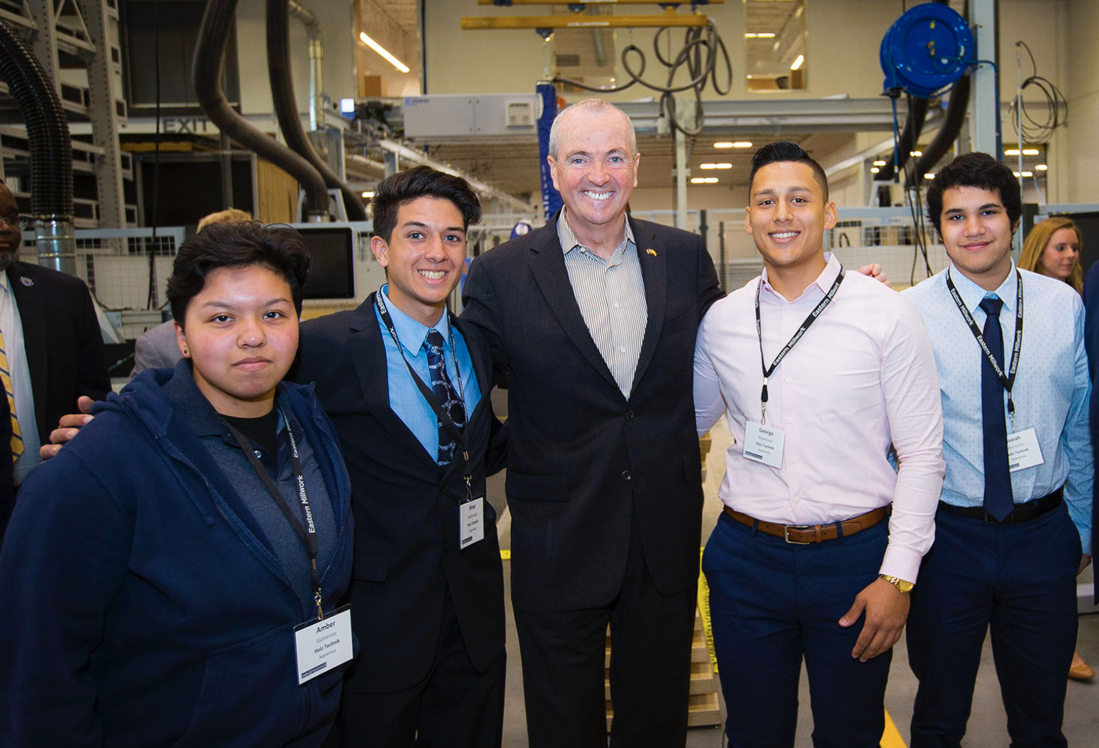 El gobernador de Nueva Jersey, Phil Murphy, junto a estudiantes de la Academia Holz-Technik HCCC-EMI