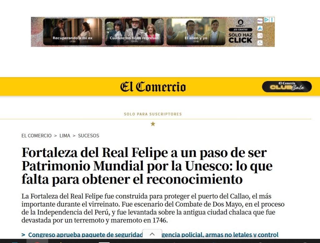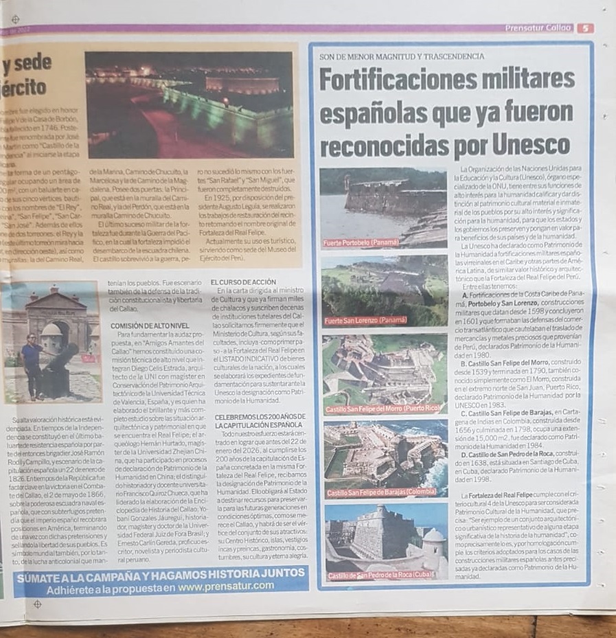 POR INICIATIVA CIUDADANA, AVANZAN LAS GESTIONES PARA QUE LA FORTALEZA DEL REAL FELIPE EN EL CALLAO SEA RECONOCIDA POR LA UNESCO COMO «PATRIMONIO CULTURAL DE LA HUMANIDAD»…