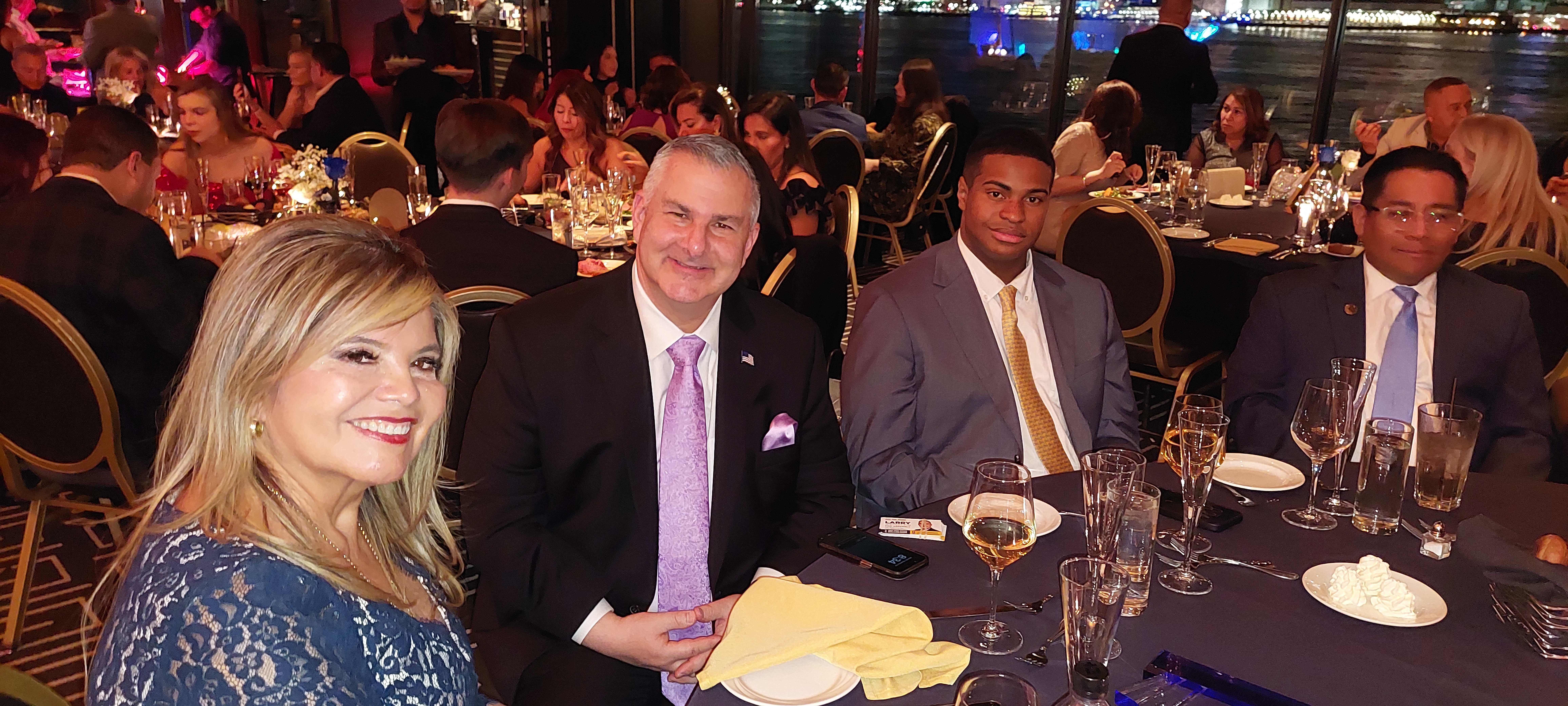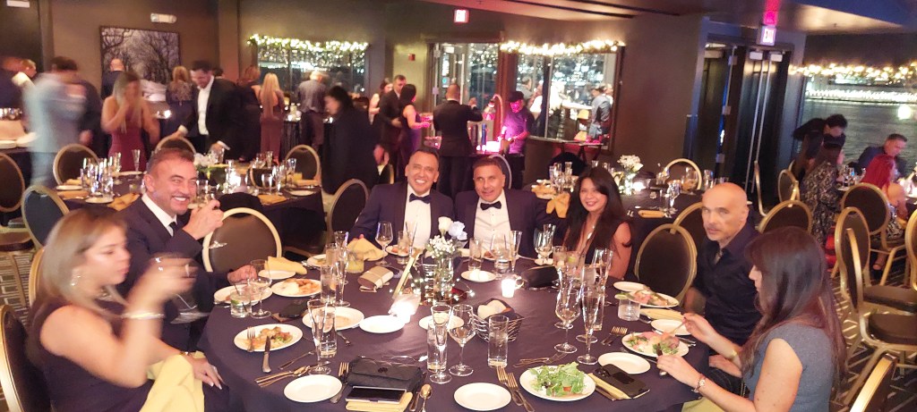 La noche continuó con una elegante cena y una presentación especial de los representantes de HCCC. Posteriormente, los asistentes disfrutaron de un animado segmento de baile y networking. Uno de los aspectos más comentados del evento fue la atmósfera festiva que se vivió bailando muy contentos a la ribera del río Hudson, con una vista espectacular del skyline de New York City iluminando el fondo, convirtiendo la celebración en un momento memorable y lleno de unión comunitaria.