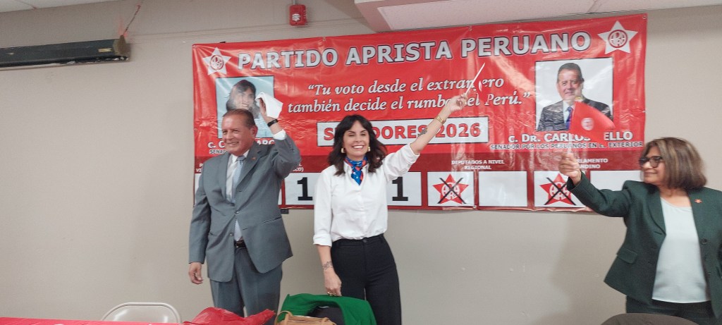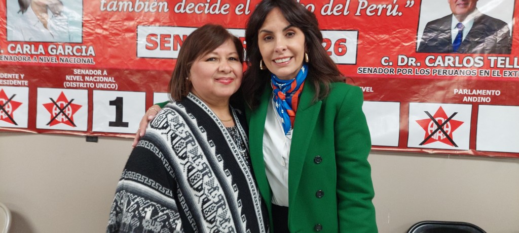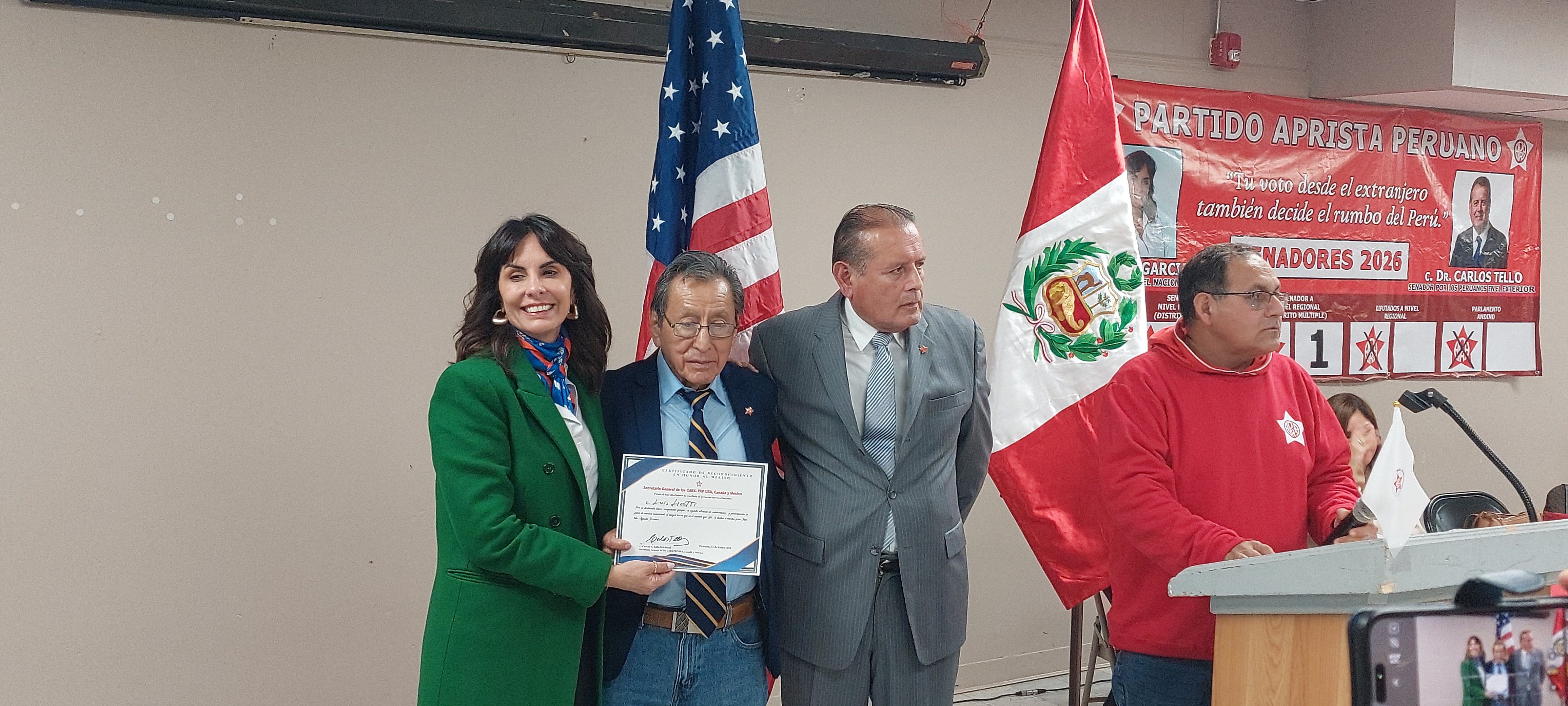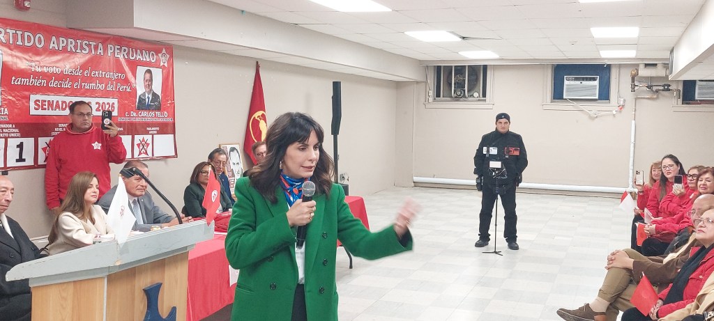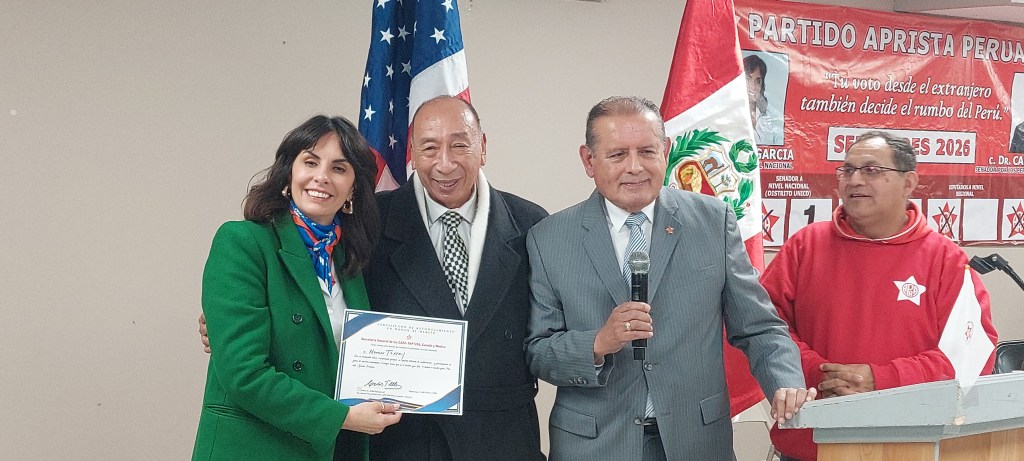 Hija del expresidente Alan García y actual candidata al Senado de la República, participó este 14 de enero 2026 en una reunión con la comunidad peruana en general, invitada por el Secretario General Regional del Partido Aprista Peruano en EEUU, Canadá y México, Dr. Carlos Tello.