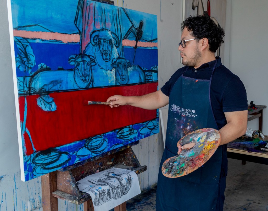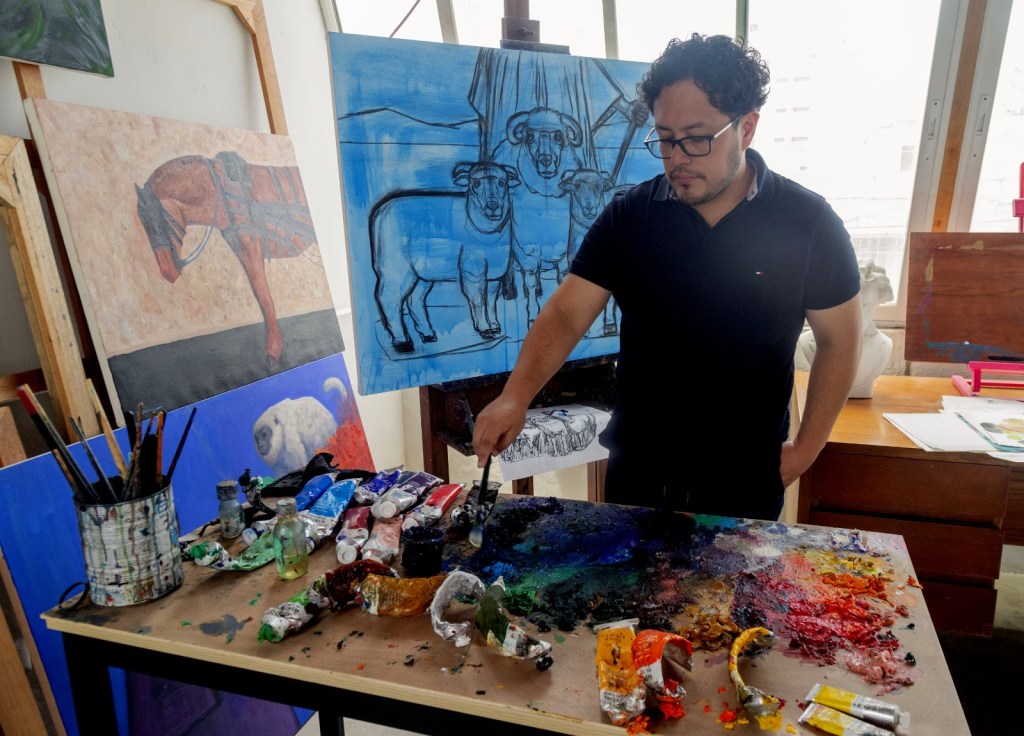 LIMA, MAR 30 – Con sus cuatro décadas de vida, el artista peruano Diego Alcalde exhibe una vasta y reconocida experiencia en nuestro país y en el extranjero. En esta entrevista nos ofrece interesantes opiniones sobre temas de dolorosa actualidad, como la migración, tan presente en sus obras. También sobre sus auspiciosas muestras en la ciudad de Nueva York (EE.UU.) y sobre la vocación temprana de su pequeño hijo Juan Diego, heredero de la tradición artística familiar.